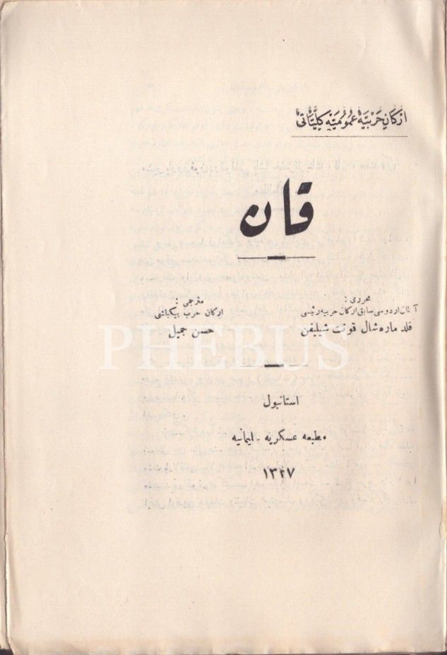 Erkân-ı Harbiyye-i Umûmiyye Külliyyâtı´ndan KAN, Feldmareşal Kont Schlieffen, çev. Hasan Cemil, Askerî Matbaa, İstanbul 1327, 278 s., 18x25 cm