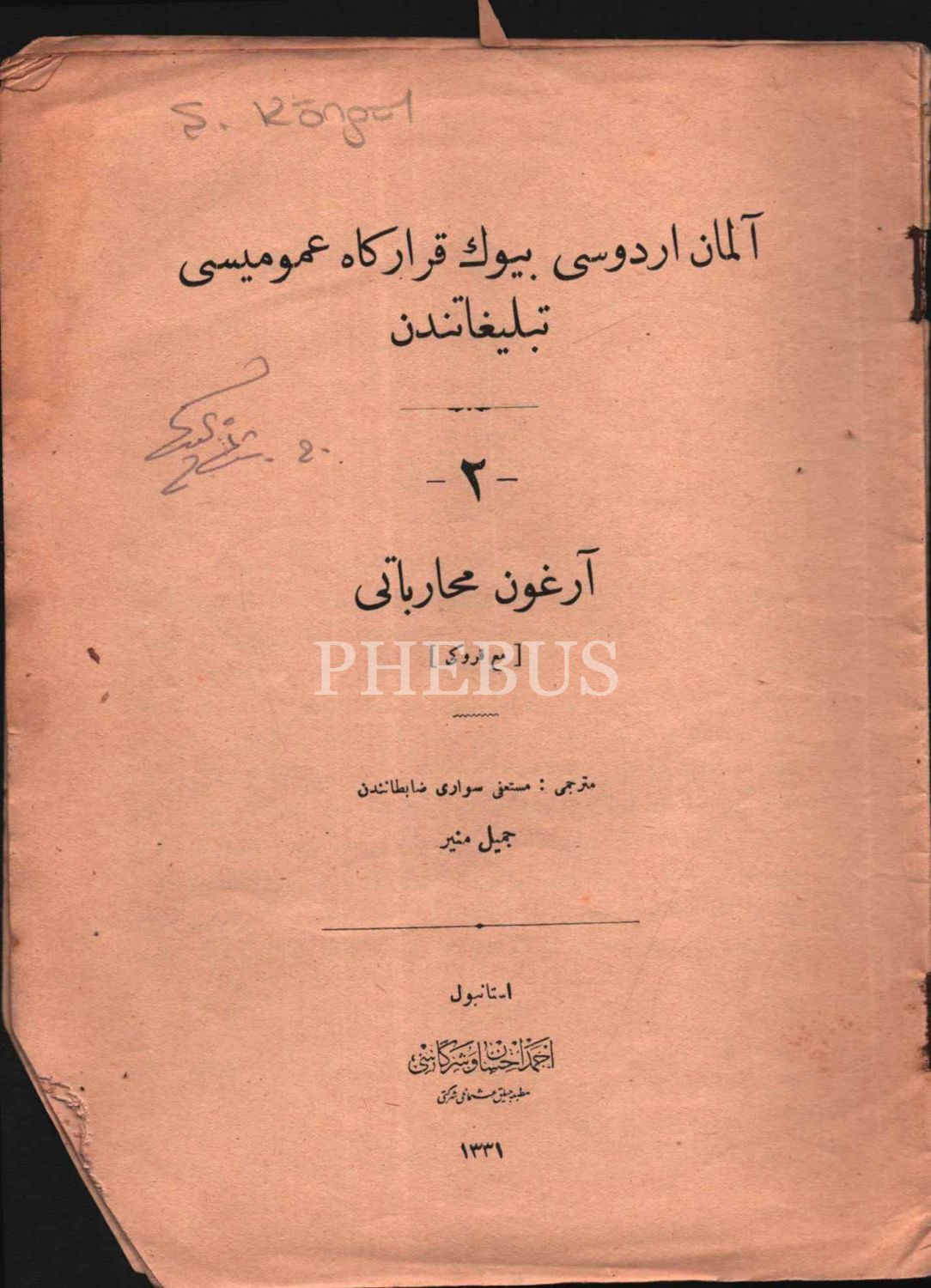 Alman Ordusu Büyük Karargâh-ı Umûmîsi Teblîgâtından 2: ARGON MUHÂREBÂTI (Krokiyle), çev. Cemil Münir, Ahmed İhsan ve Şürekası Matbaası, 1331, 16 s., 18x24 cm