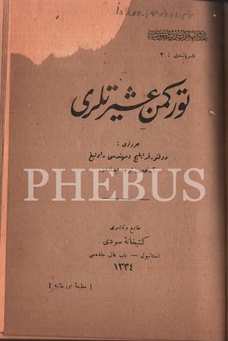 Aşiretler ve Muhacirler Genel Müdürlüğü Neşriyatından TÜRKMEN AŞÎRETLERİ, Dr. Frayliç ve Mühendis Ravlig [Hâbil Âdem], Orhaniye Matbaası, İstanbul 1334, 533 s., 15x21 cm