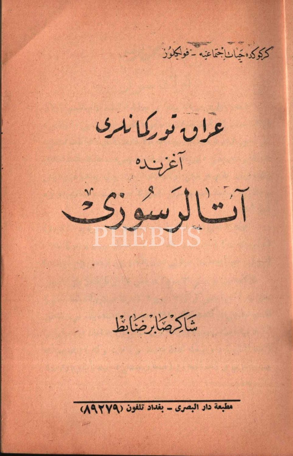 IRAK TÜRKMENLERİ AĞZINDA ATALAR SÖZÜ, Şakir Sâbir Zabit, Darü´l-Basra Matbaası, Bağdad, 98 s., 15x22 cm