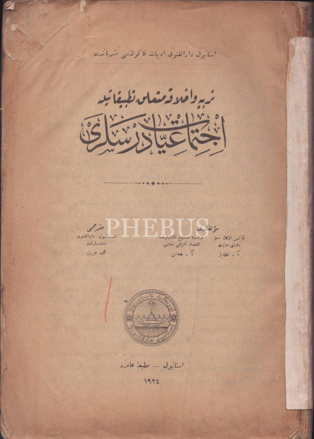 Terbiye ve Ahlâka Müteallik Tatbîkâtıyla İCTİMÂİYYÂT DERSLERİ [Sosyoloji], A. Gleyse-A. Hesse, çev. Mehmed İzzet, Amire Matbaası, İstanbul 1924, 335 s., 17x24 cm
