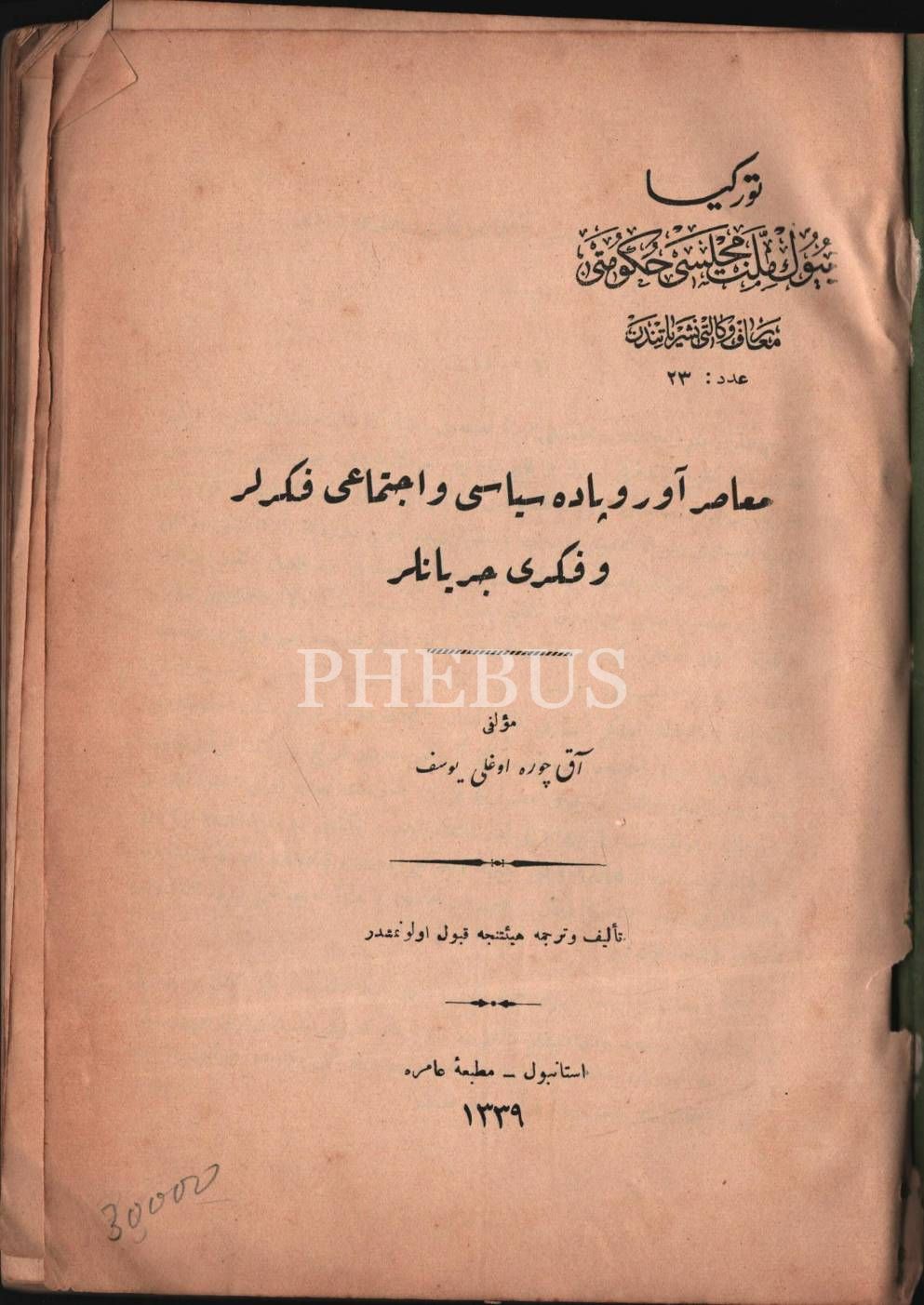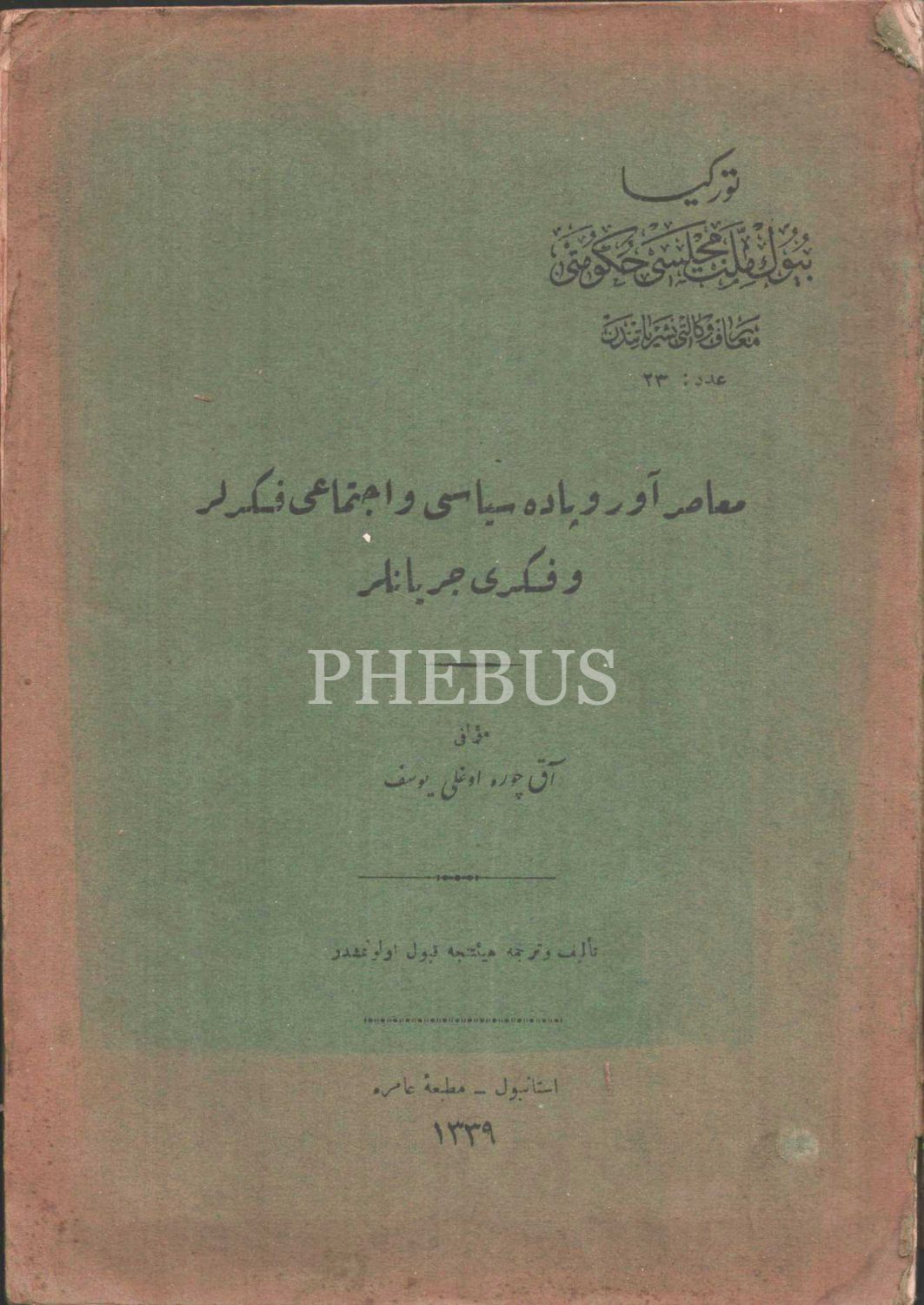 MUÂSIR AVRUPA´DA SİYÂSÎ VE İCTİMÂÎ FİKİRLER VE FİKRÎ CEREYÂNLAR, Akçuraoğlu Yusuf, Amire Matbaası, İstanbul 1339, 94 s., 17x24 cm