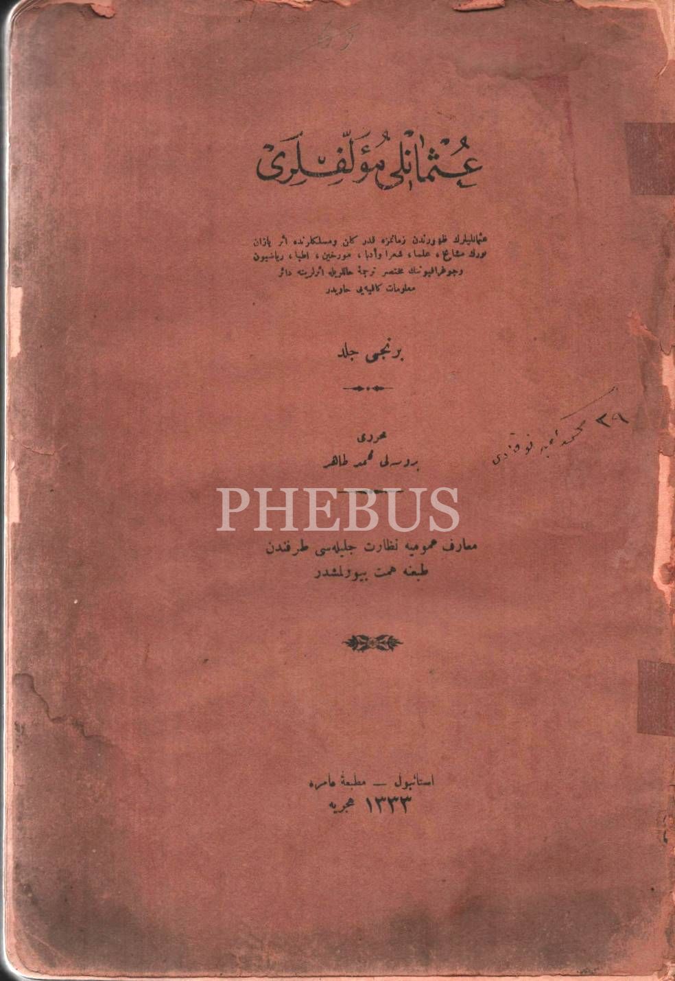 OSMANLI MÜELLİFLERİ (1. Cild), Bursalı Mehmed Tahir, Amire Matbaası, İstanbul 1333, 406 s., 18x27 cm