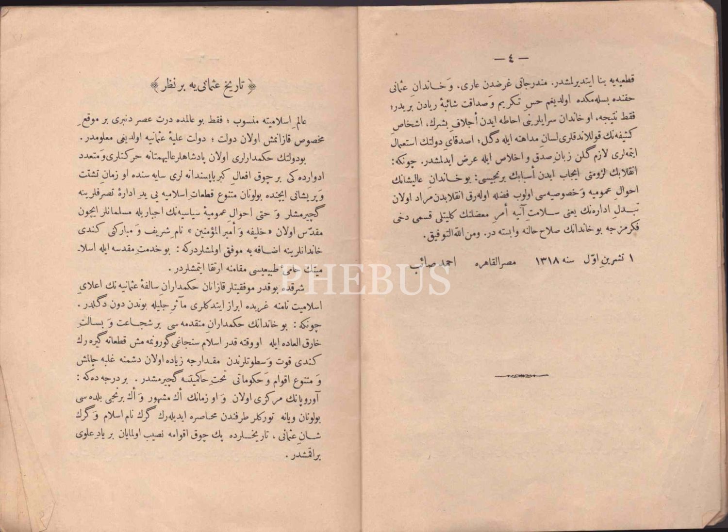 "Ümmet-i Osmâniyye ile hânedân-ı saltanatın muhâkeme-i efkârına ma´rûz risâledir."