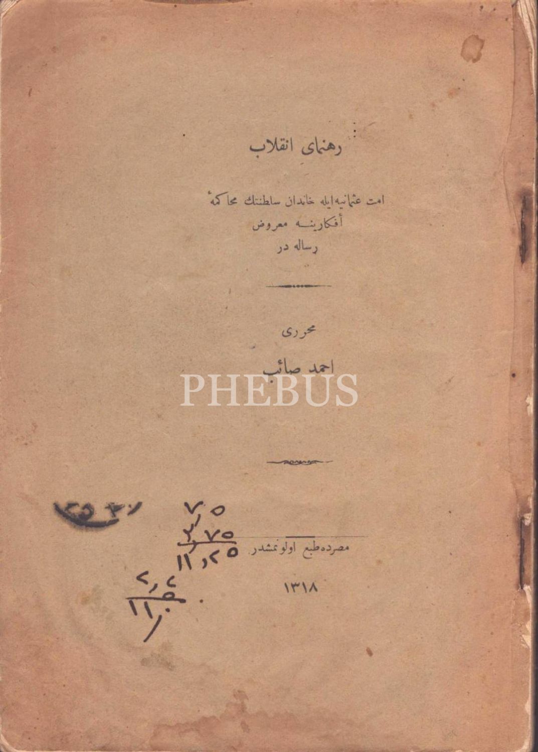 REHNÜMÂ-YI İNKILÂB [Devrim Rehberi], Ahmed Saib, Mısır 1318, 78 s., 14x19 cm