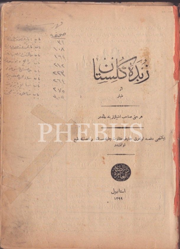ZÜBDE-İ GÜLİSTÂN, Tayyar, Amire Matbaası, İstanbul 1299, 355 s., 19x26 cm