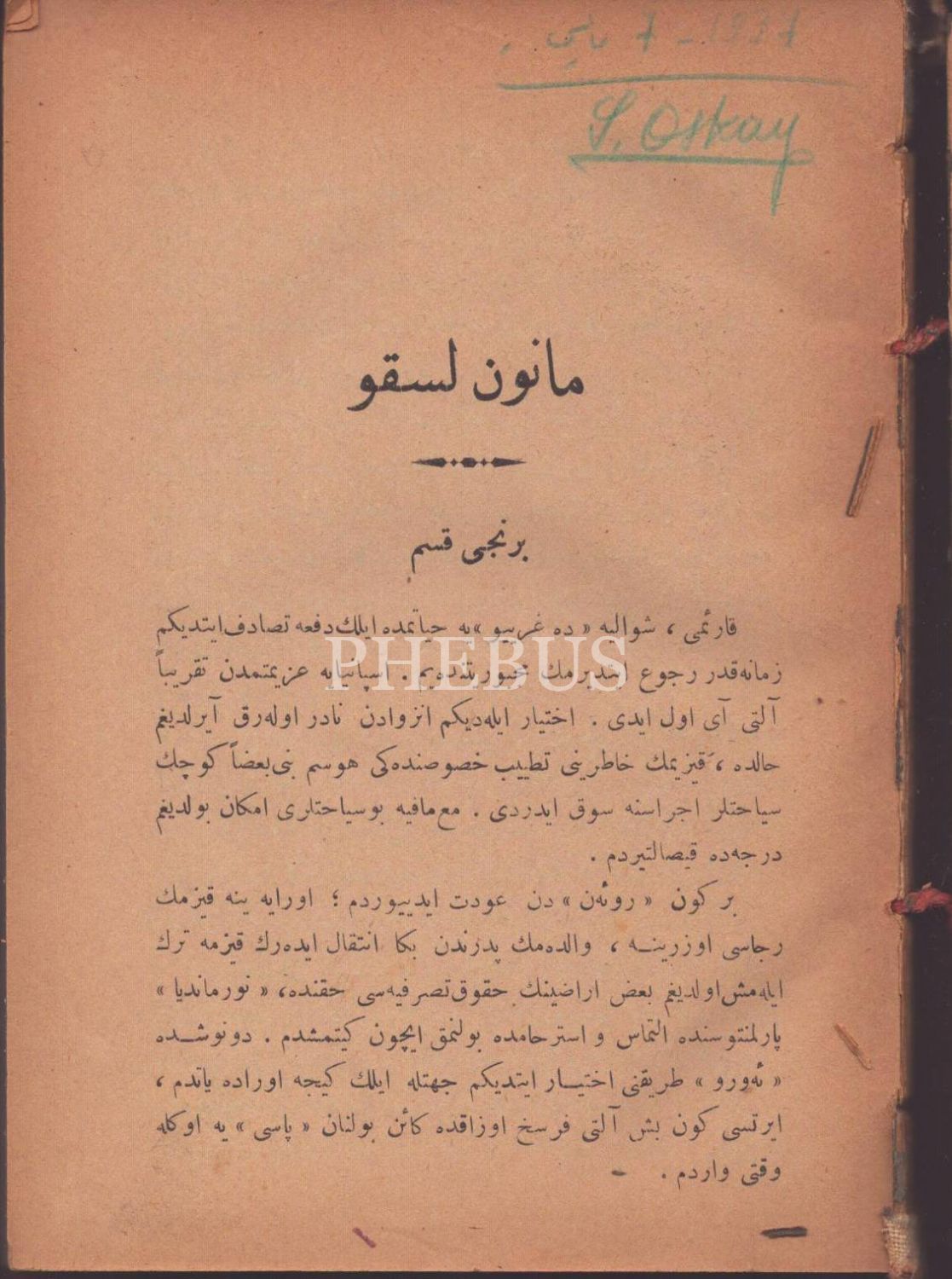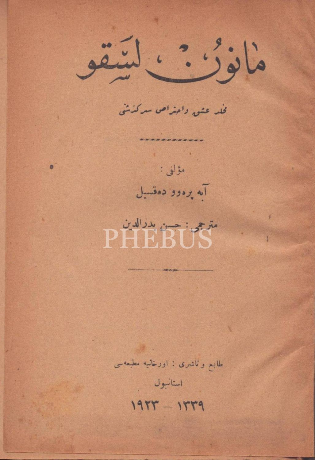 MANON LESCAUT, Abbe Prevost, çev. Hasan Bedreddin, Orhaniye Matbaası, İstanbul 1923, 234 s., 14x20 cm