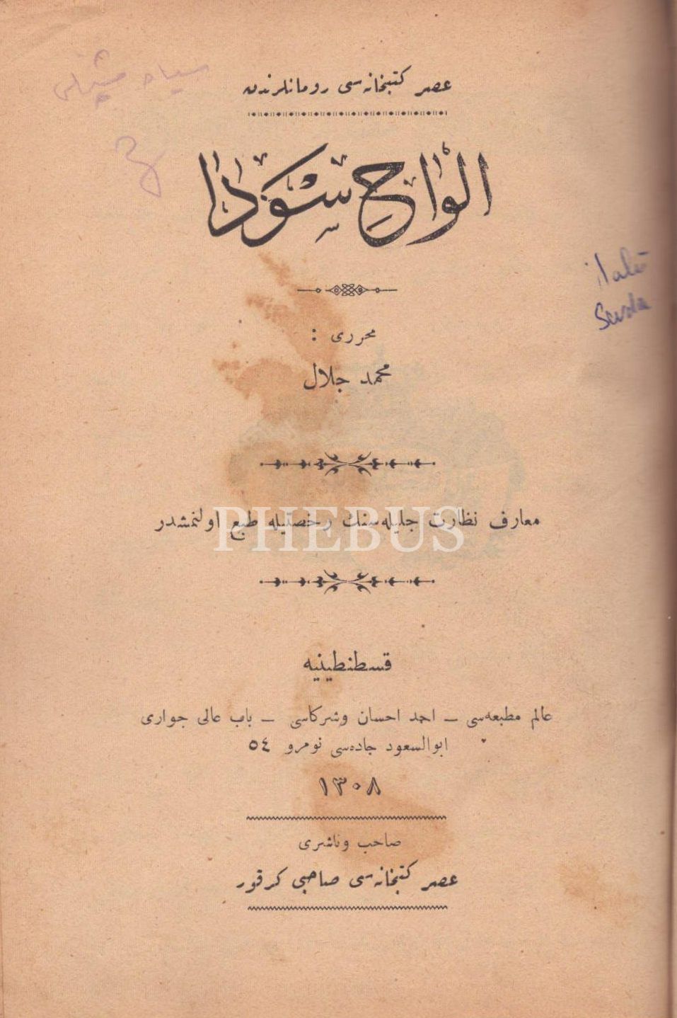 ELVÂH-I SEVDÂ, Mehmed Celal, Alim Matbaası, İstanbul 1308, 251 s., 14x19 cm