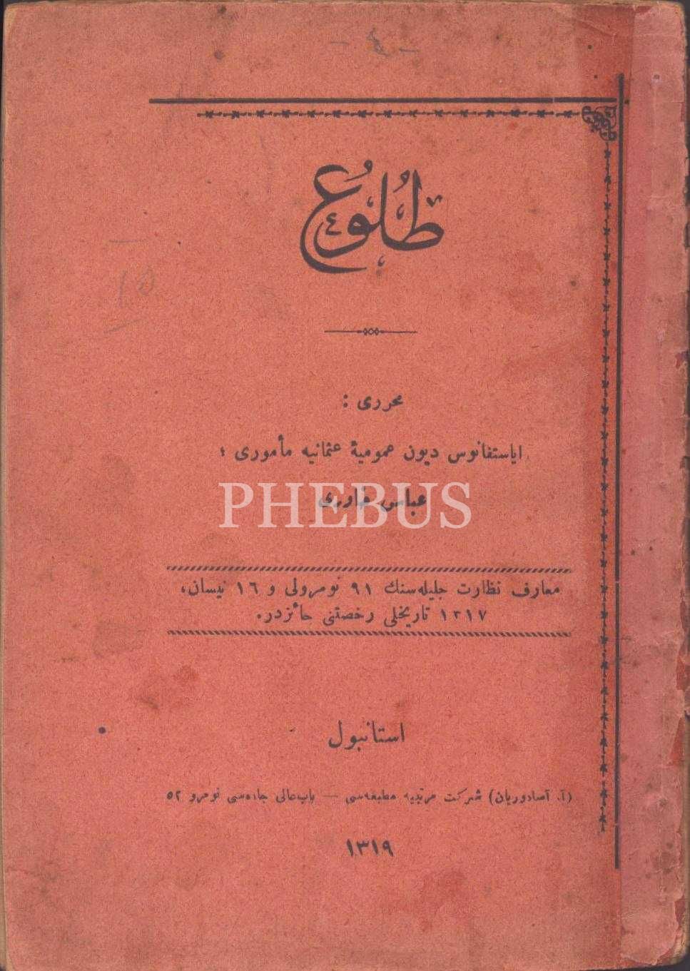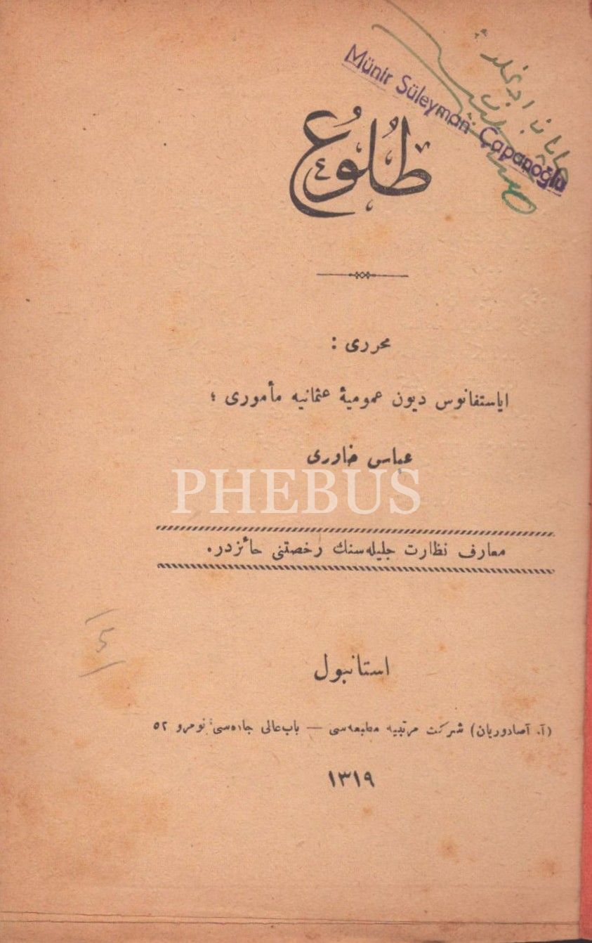 TULÛ´, Abbas Hâverî, A. Asaduryan Şirket-i Mürettibiye Matbaası, İstanbul 1319, 62 s., 12x18 cm