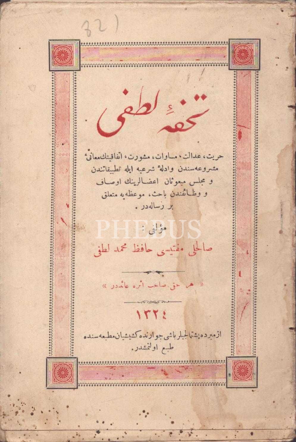 TUHFE-İ LÜTFÎ, Salihli Müftüsü Hafız Mehmed Lütfü, Keşişyan Matbaası, İzmir 1324, 33 s., 13x19 cm