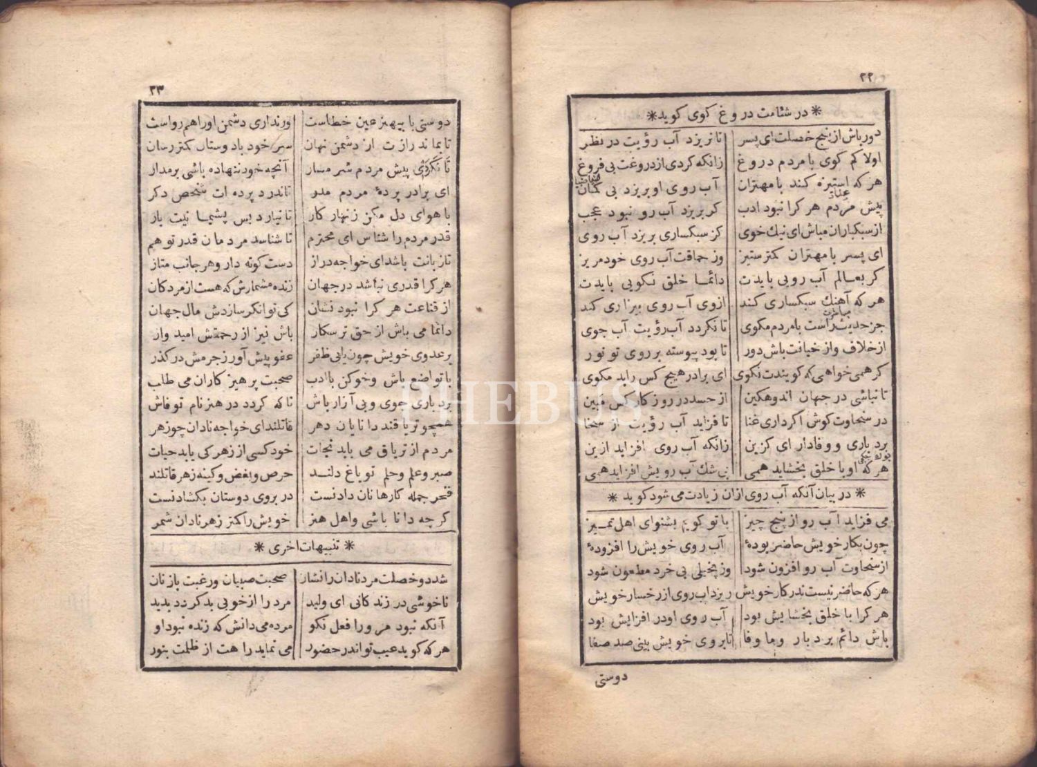 Ebrulu cildinde Farsça PEND-İ ATTÂR [Nasihatname], 1251, 44 s., 14x21 cm
