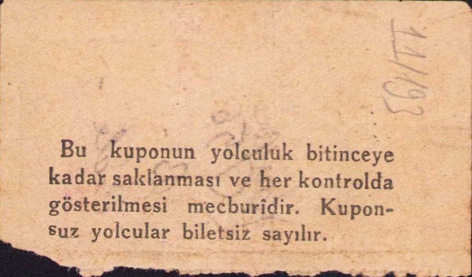 Denizyolları Konya Vapuru 1948 tarihli bilet