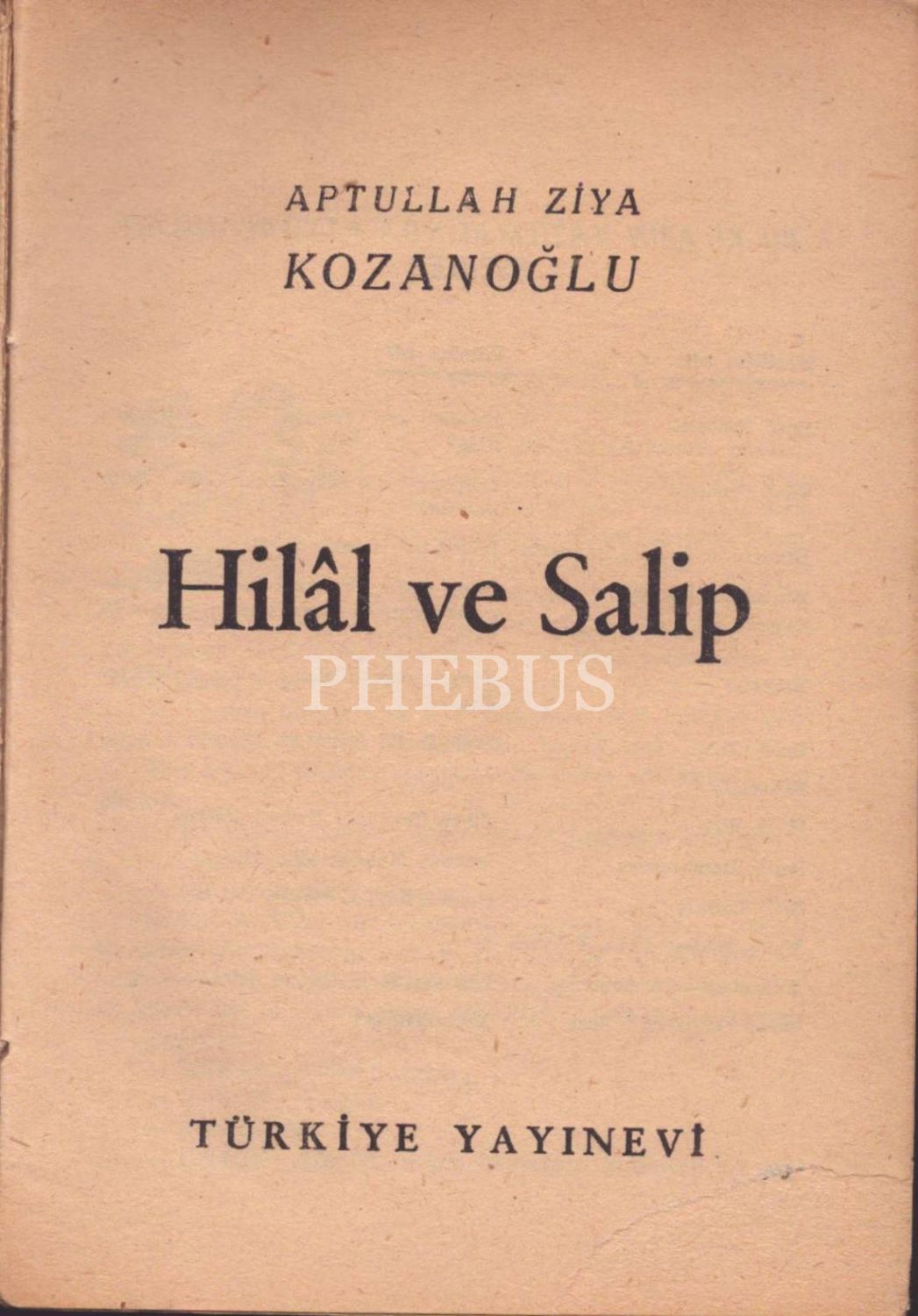 HİLÂL VE SALİP, Aptullah Ziya Kozanoğlu, Türkiye Yayınevi, İstanbul - 1961, 336 sayfa, 14x20 cm