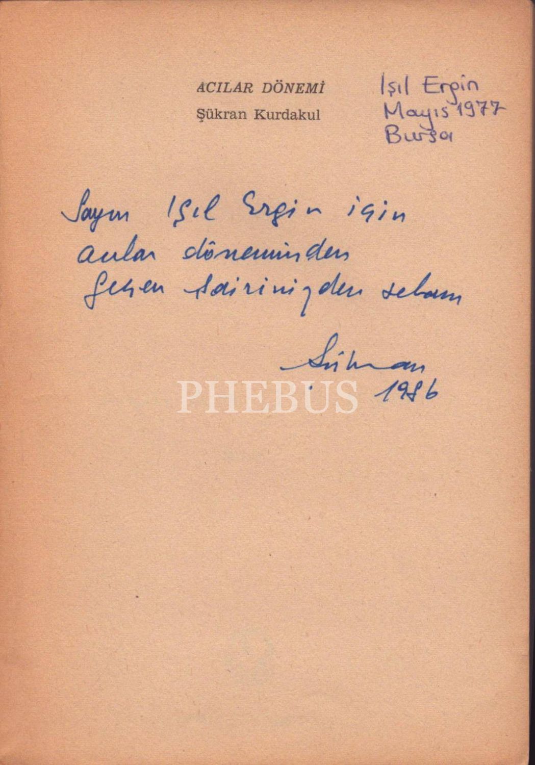 Şükran Kurdakul´dan ithaflı ve imzalı ACILAR DÖNEMİ (Şiirler), Cem Yayınevi, İstanbul - 1977, 79 sayfa, 14x20 cm