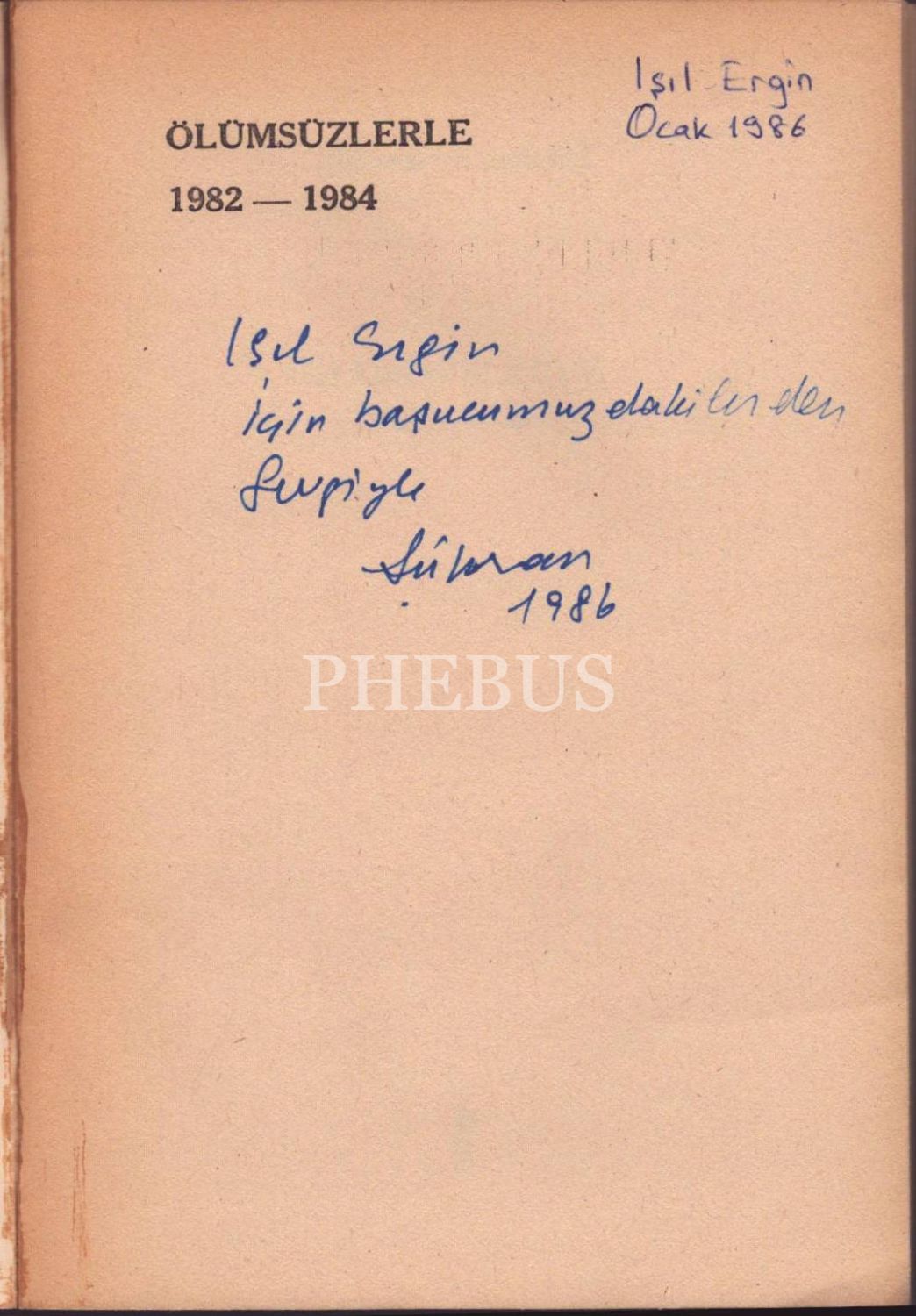 Şükran Kurdakul´dan ithaflı ve imzalı ÖLÜMSÜZLERLE (1982-1984), İzlem Yayınları, İstanbul - 1985, 64 sayfa, 14x20 cm