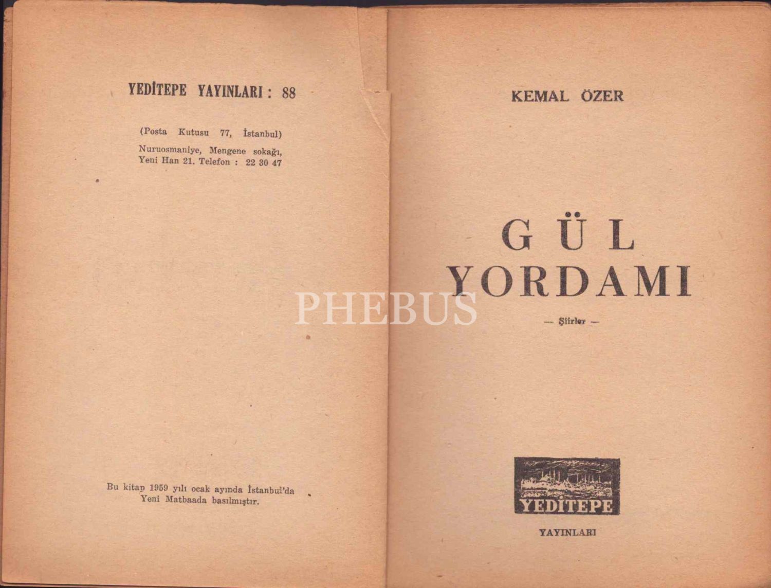 GÜL YORDAMI (Şiirler), Kemal Özer, Yeditepe Yayınları, İstanbul - Ocak 1959, 43 sayfa, 14x20 cm