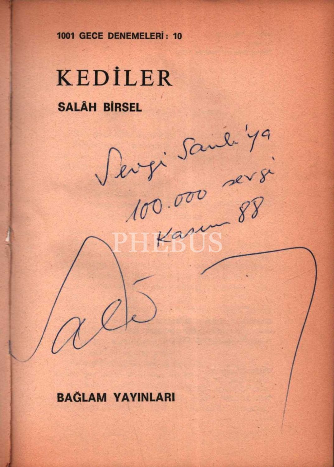 Salâh Birsel´den Sevgi Sanlı´ya ithaflı ve imzalı 1001 GECE DENEMELERİ 10: KEDİLER, Bağlam Yayınları, 204 sayfa, 14x20 cm