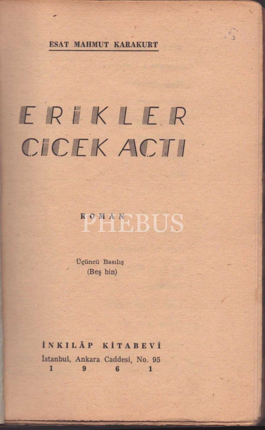 ERİKLER ÇİÇEK AÇTI (Roman), Esat Mahmut Karakurt, İnkılâp Kitabevi, İstanbul - 1961, 152 sayfa, 15x21 cm