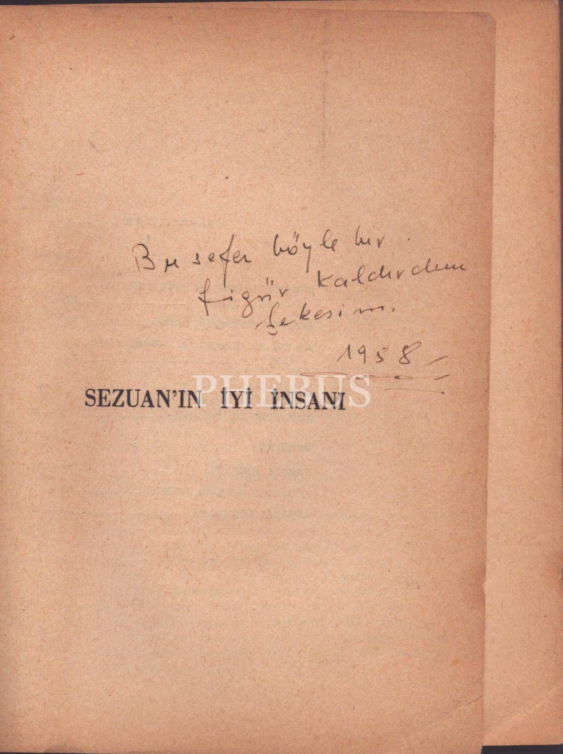 Kitabın ilk sayfasında imzası tespit edilemeyen bir ithaf mevcuttur: "Bu sefer böyle bir figür kaldırdım şekerim. 1958". Arka kapağının sol alt köşesinde ufak bir kopuk mevcut haliyle.