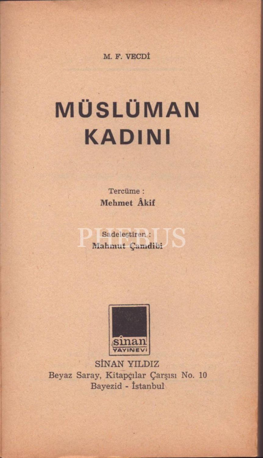 MÜSLÜMAN KADINI, M. F. Vecdi, tercüme: Mehmet Âkif, sadeleştiren: Mahmut Çamdibi, Sinan Yayınevi, Ocak 1972, 193 sayfa, 11x19 cm