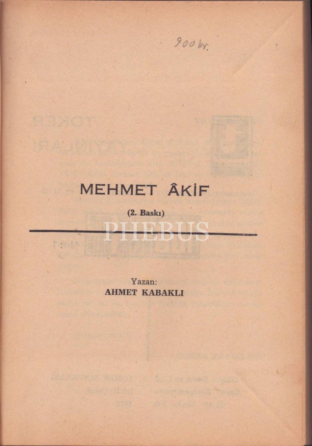 MEHMET ÂKİF, Ahmet Kabaklı, Toker Yayınları, 1972, 223 sayfa, 14x20 cm