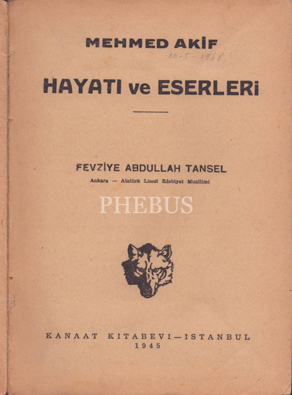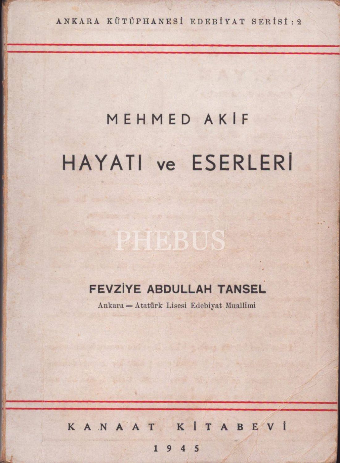 MEHMED AKİF: Hayatı ve Eserleri, Fevziye Abdullah Tansel, Kanaat Kitabevi, İstanbul - 1945, 247 sayfa, 14x20 cm