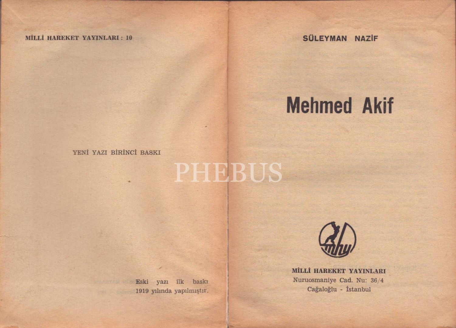 MEHMED AKİF, Süleyman Nazif, Millî Hareket Yayınları, İstanbul - 1971, 136 sayfa, 14x20 cm
