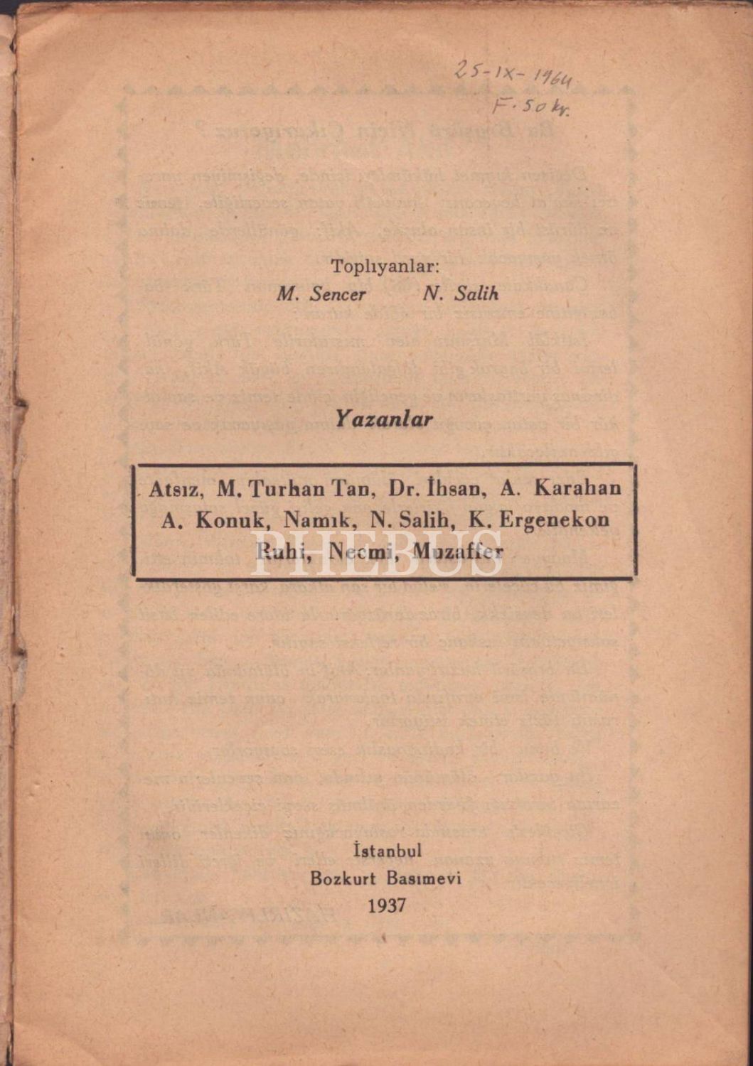 MEHMET AKİF, toplıyanlar: M. Sencer & N. Salih, Bozkurt Basımevi, İstanbul - 1937, 35 sayfa, 14x20 cm