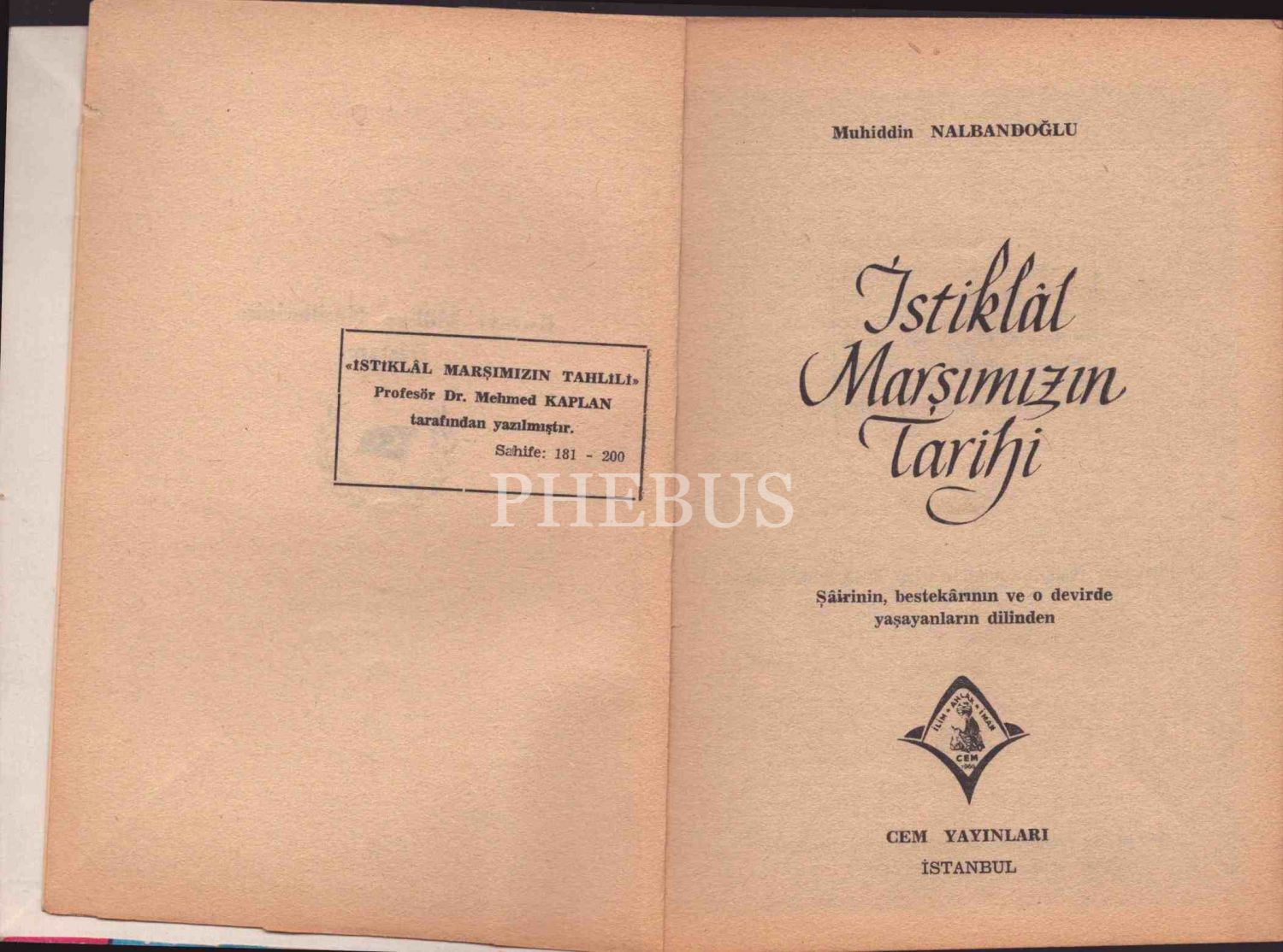 İSTİKLÂL MARŞIMIZIN TARİHİ (Şâirinin, Bestekârının ve O Devirde Yaşayanların Dilinden), Muhiddin Nalbandoğlu, Cem Yayınları, İstanbul - 1964, 207 sayfa, 14x20 cm