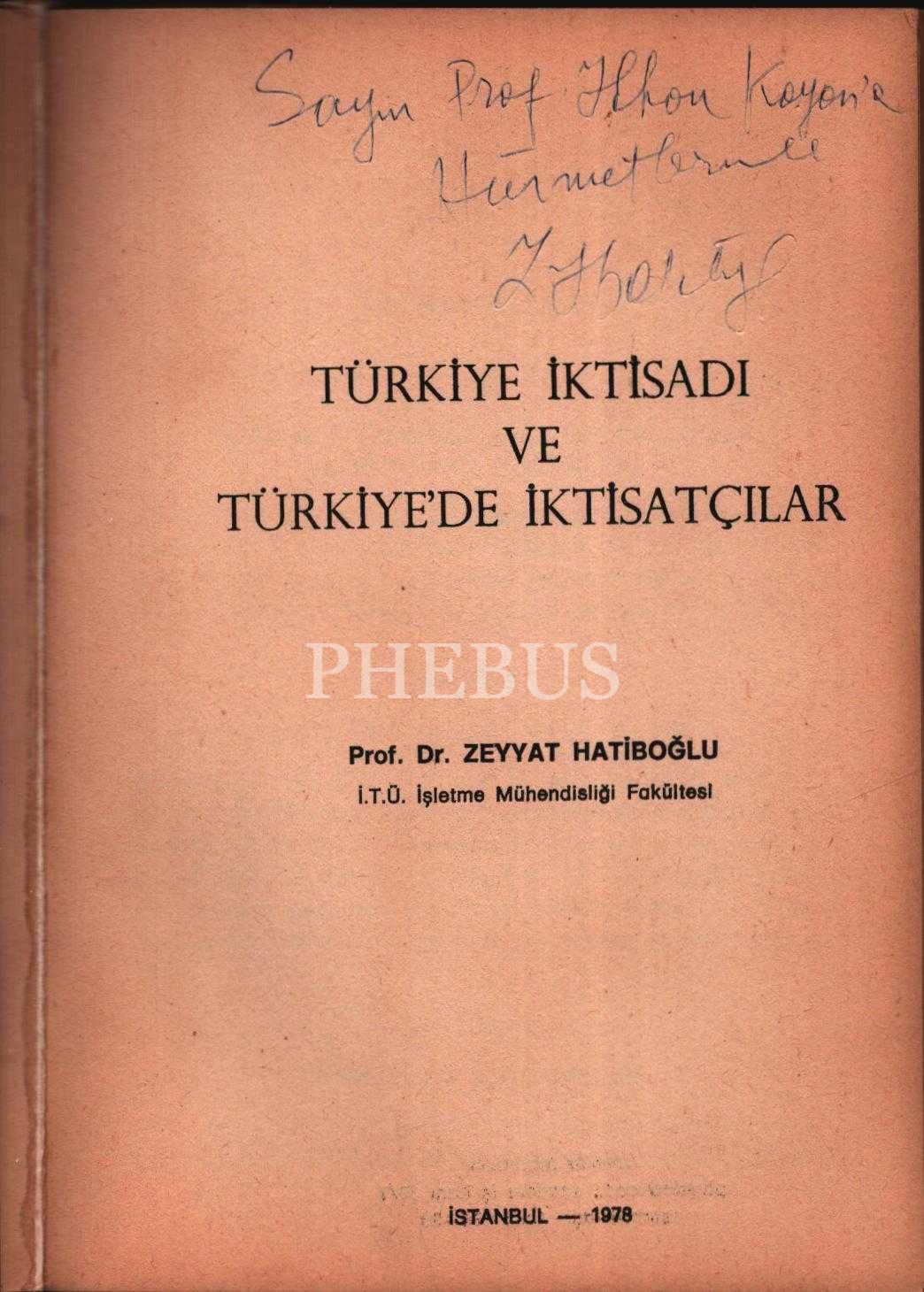 Prof. Dr. Zeyyat Hatiboğlu´dan İlhan Kayan´a ithaflı ve imzalı TÜRKİYE İKTİSADI VE TÜRKİYEDE İKTİSATÇILAR, Met/er Matbaası, İstanbul - 1978, 154 sayfa, 13x19 cm