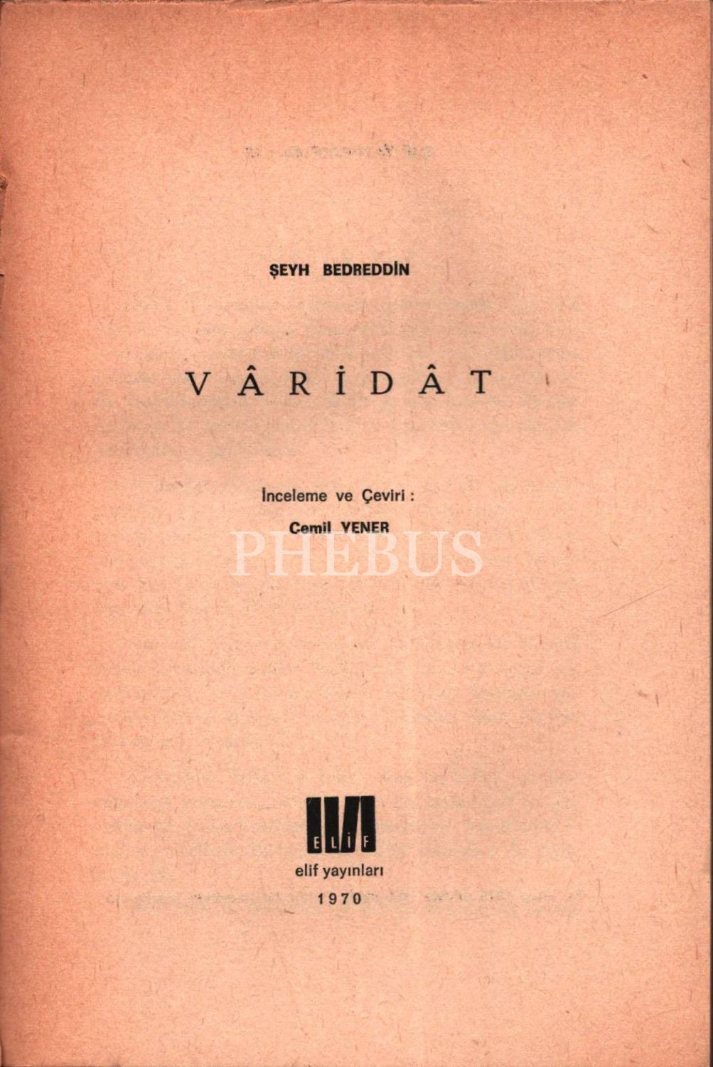 Çeviren Cemil Yener´den ithaflı ve imzalı VÂRİDÂT, Şeyh Bedreddin, Elif Yayınları, 1970, 126 sayfa, 14x20 cm, sayfaları açılmamış