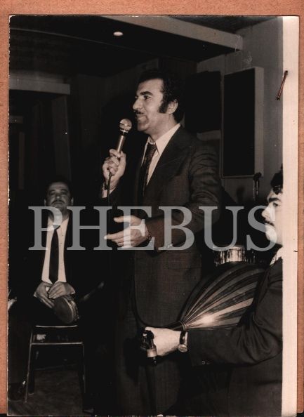 "Kızılay Tören Salonu Fotoğraf Servisi - Foto Sema" yazılı kabında şarkı söyleyen beyefendi fotoğrafı, 13x18 cm