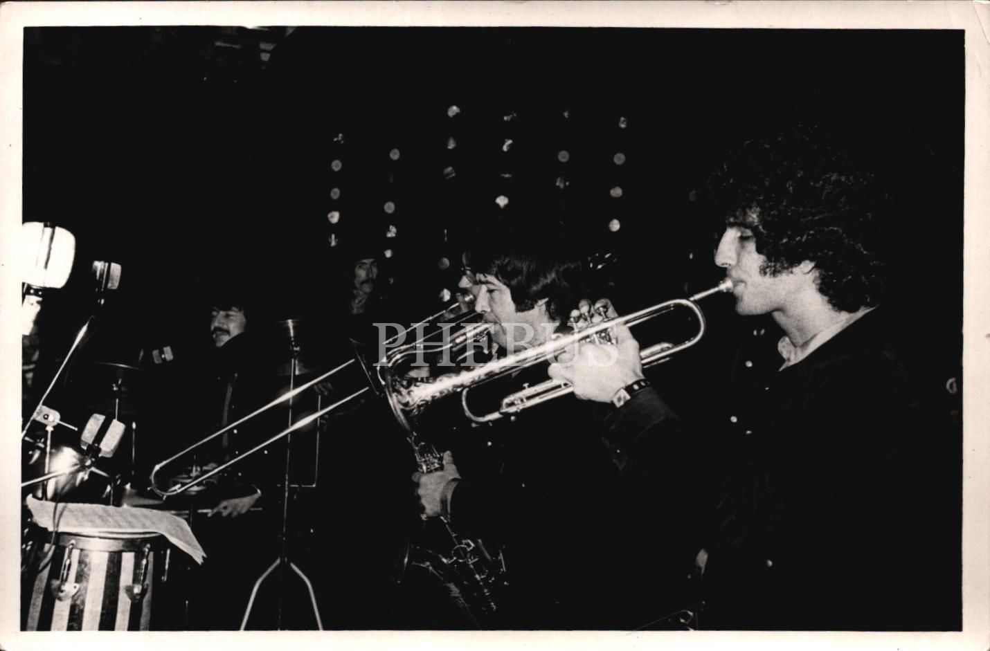 Performans halinde bir müzik grubu, arka yüzü "Foto Tek / Ömer Keskin" damgalı, 18x12 cm