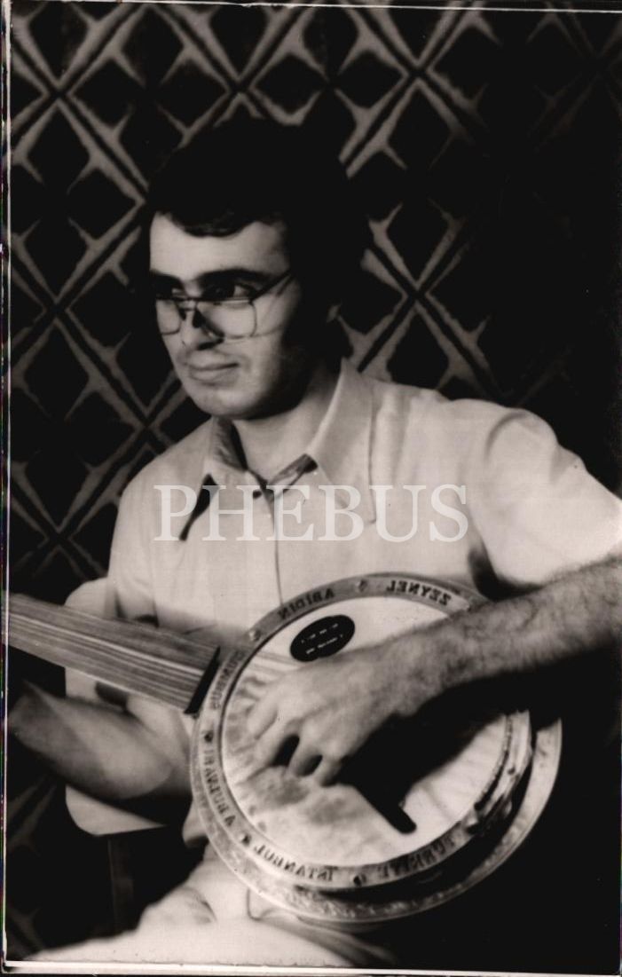 Üzerinde "Zeynel Abidin Cümbüş" yazan cümbüşünü çalan genç beyefendi, 9x14 cm