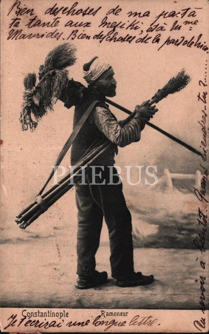 Osmanlı döneminden bir baca temizleyicisi, ed. Au Bon Marche, Pera / Constantinople, postadan geçmiş, 9x14 cm