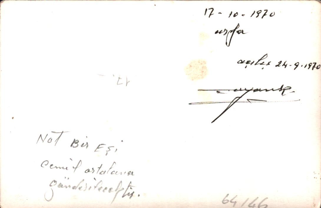 "17-10-1970 Urfa. Not: Bir eşi Cemil Artalana gönderilmiştir."