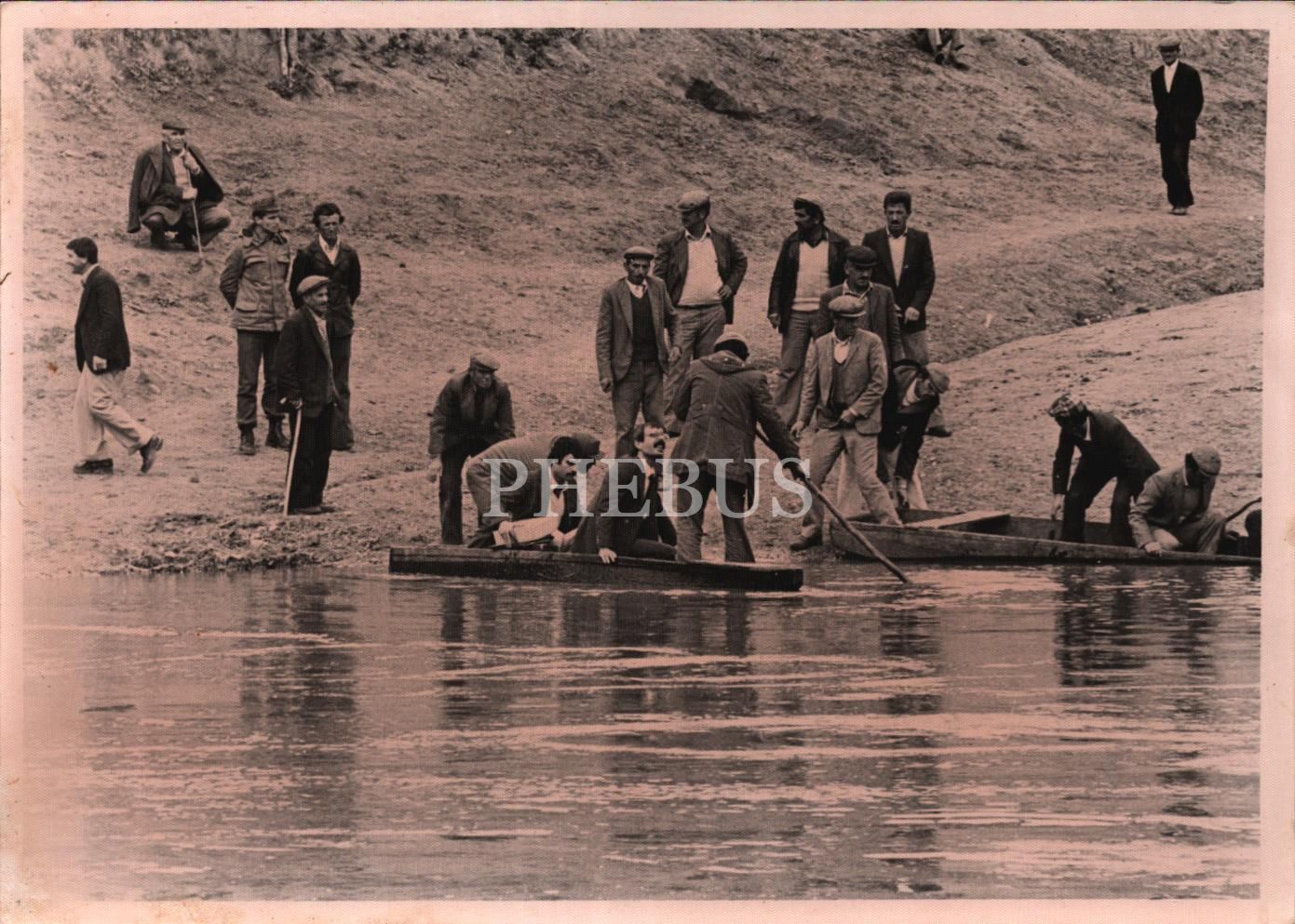 Misafirlerini kayıklarla akarsudan karşıya geçirmeye hazırlanan kasabalılar, 18x13 cm