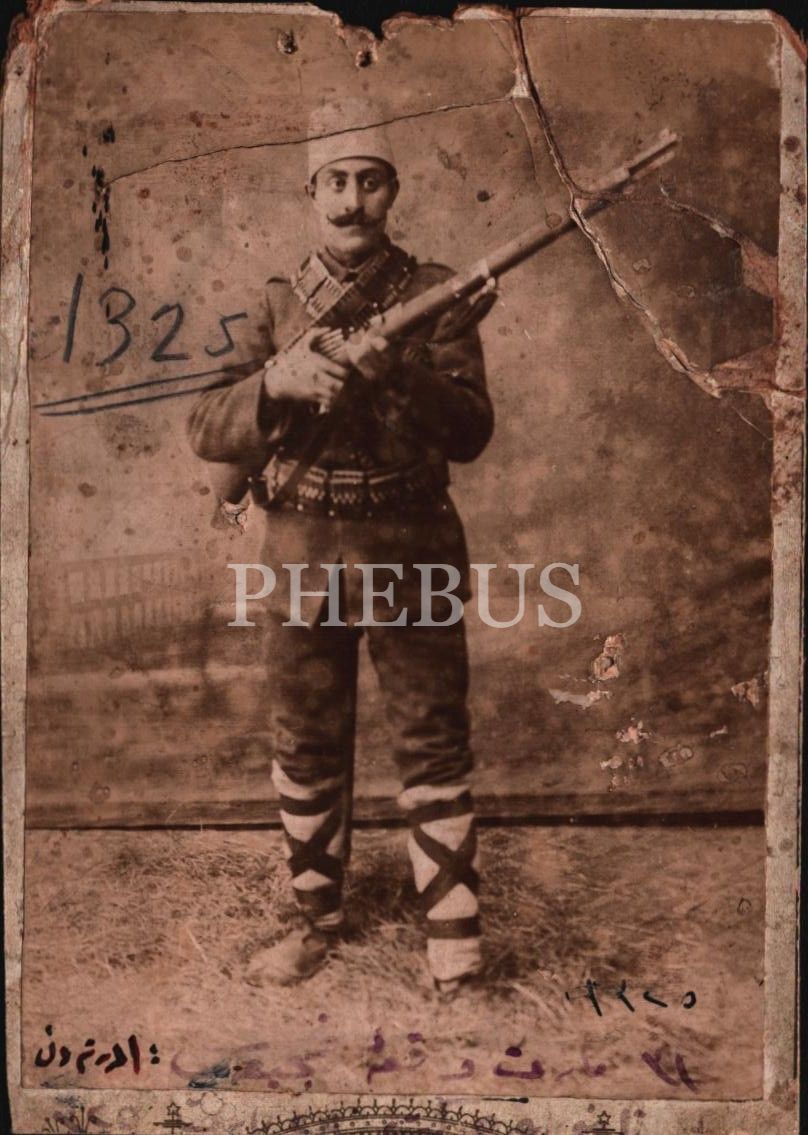 31 Mart Vakası´na katılan bir askerin ithaflı ve imzalı, 25 Temmuz 1325 tarihli kabin fotoğrafı, 10x14 cm