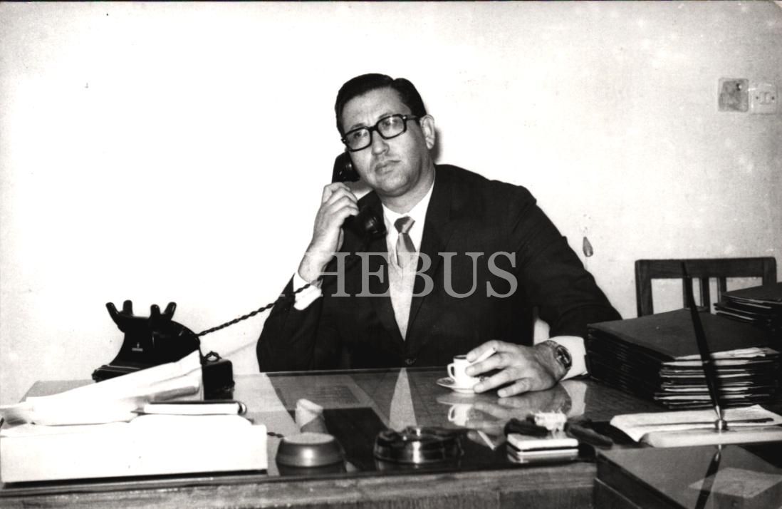 Önünde Türk kahvesiyle telefon görüşmesi yapan beyefendi, 14x9 cm