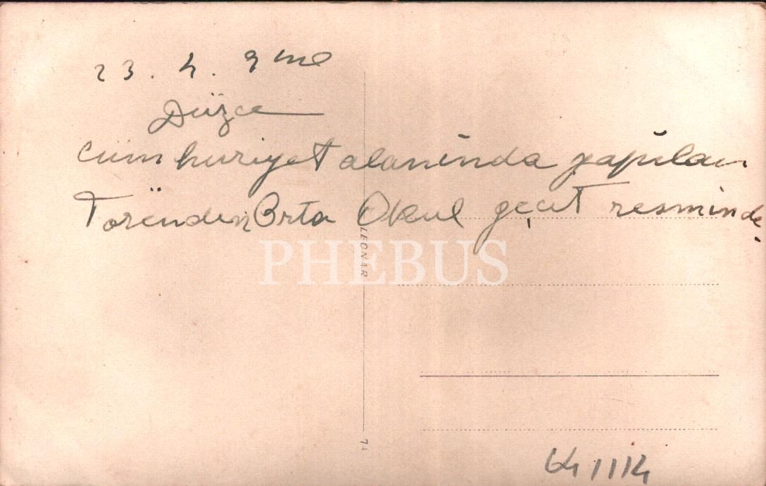 Düzce Cumhuriyet alanında 23 Nisan Ulusal Egemenlik ve Çocuk Bayramı kutlaması, 1940, arka yüzü açıklamalı, 14x9 cm