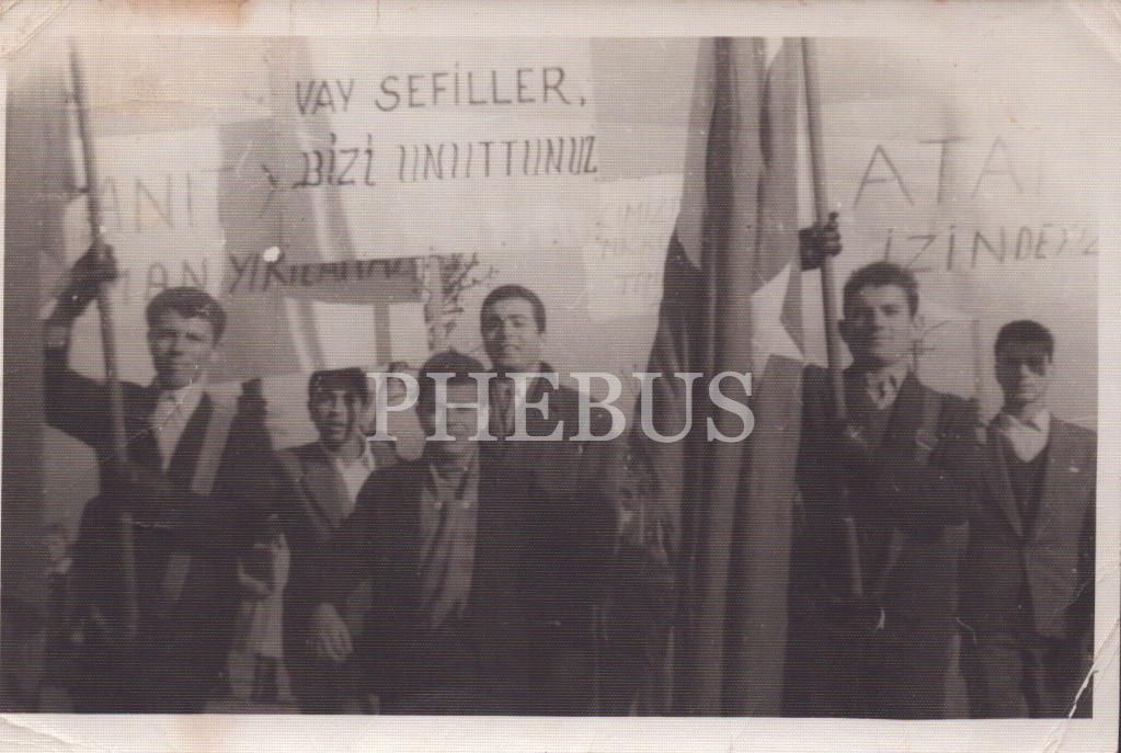 Mustafa Kemal Atatürk heykelini yıkanlara karşı miting düzenleyen gençlerin, ellerinde "Vay Sefiller, Bizi Unuttunuz" ve "Atam İzindeyiz" pankartlarıyla miting sonrası çekilmiş bir hatırası, 13x9 cm