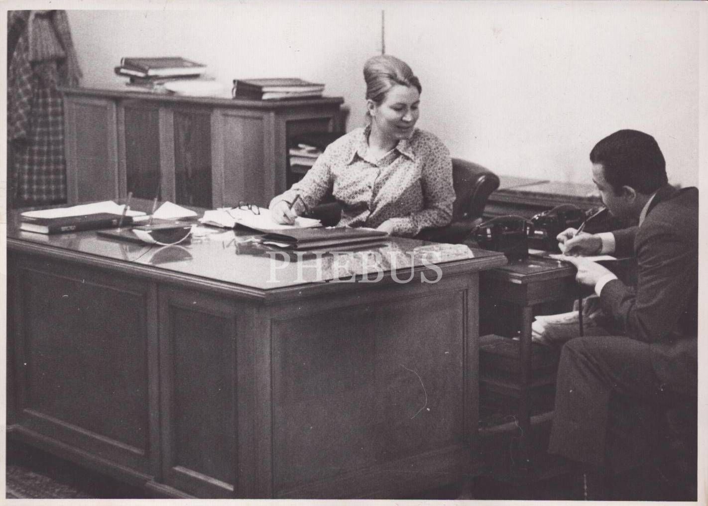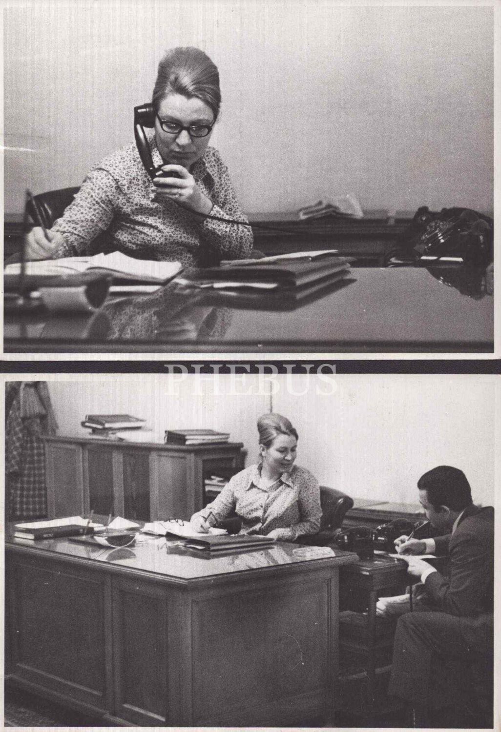 İstanbul Valiliği Özel Kalem Müdürü Ayten Emmioğlu´nu iş başında gösteren, arka yüzleri "Tercüman Arşivi" damgalı iki adet fotoğraf, 18x13 cm