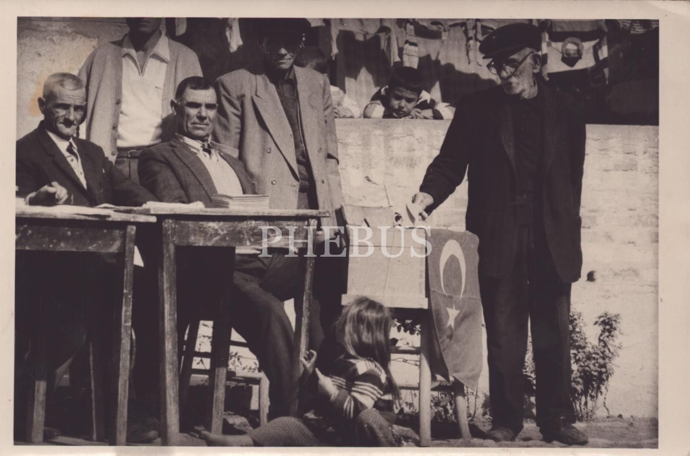 "Çekmece´nin bir köyü"nde oylarını kullanan halk, arka yüzü "Türk Haberler Ajansı" ve "12 Ekim 1969" damgalı, 18x12 cm