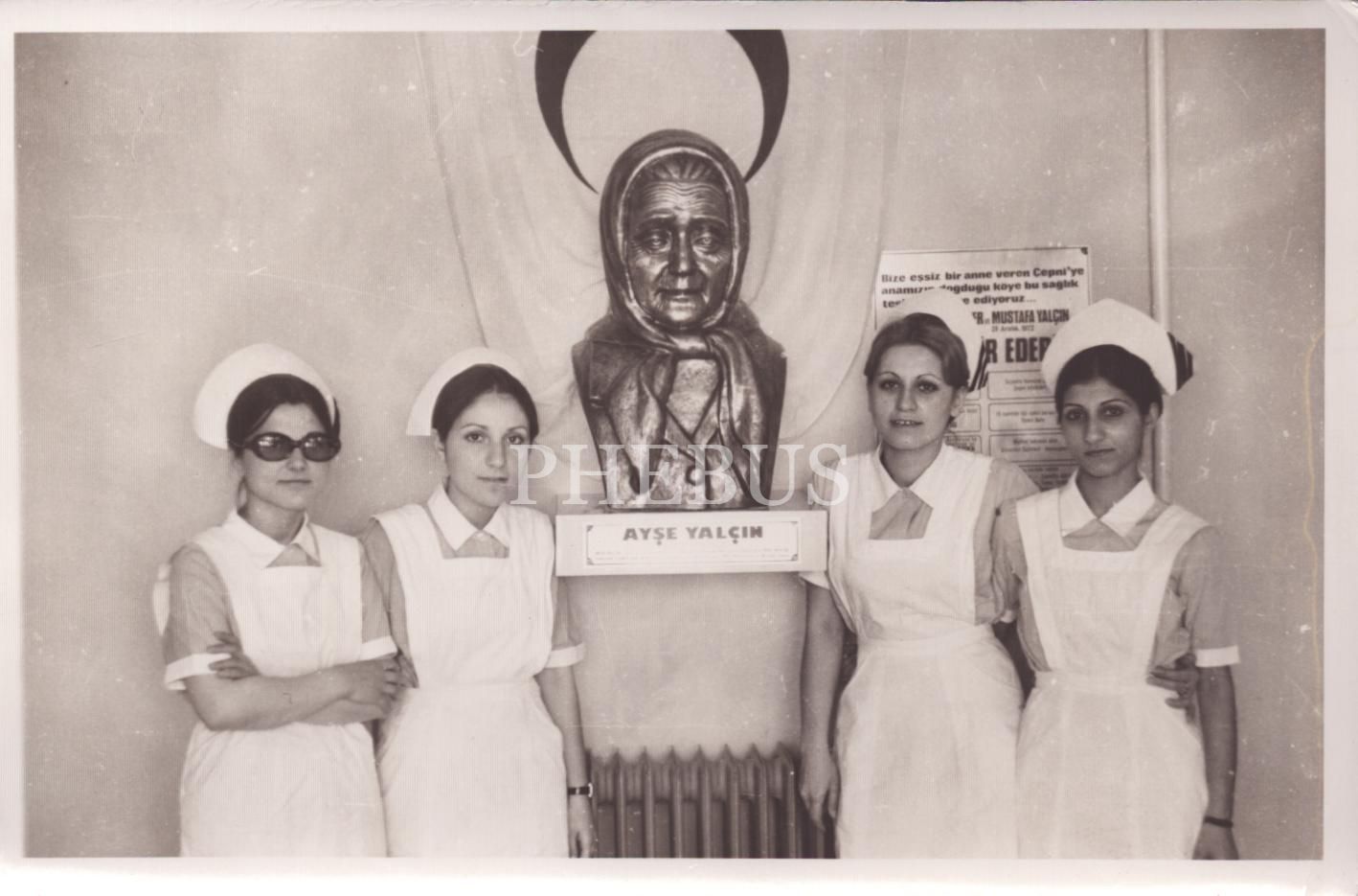 Bandırma´nın Cepni Köyü´nde bulunan Ayşe Yalçın Sağlık Ocağı´nda çalışan hemşireler, Ayşe Yalçın´ın heykeli başında, 18x12 cm