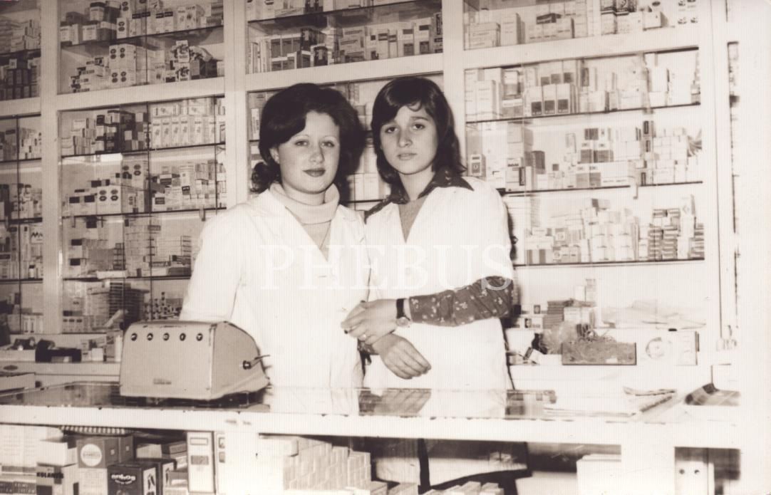 Tezgâh başında poz veren eczacılar, 14x9 cm