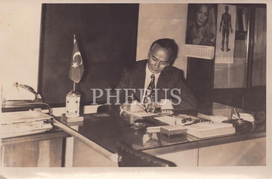 Masası başında çalışan bir doktorun 23 Ekim 1973 tarihli fotoğrafı, 14x9 cm