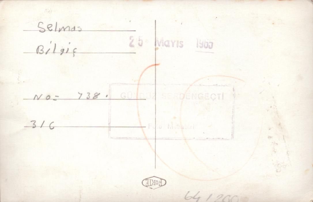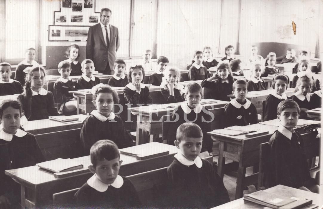 Bir ilkokul sınıfının içinden görünüm, arka yüzü "25 Mayıs 1965" ve "Gündüz Serdengeçti / Foto Muhabiri" damgalı, 14x9 cm