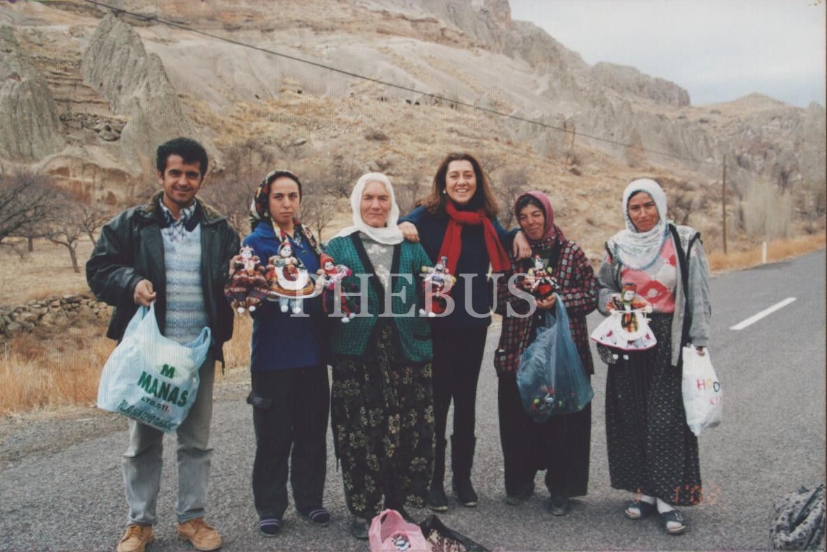 Bez bebek yapan köylü kadınlarla hatıra fotoğrafı, 15x10 cm
