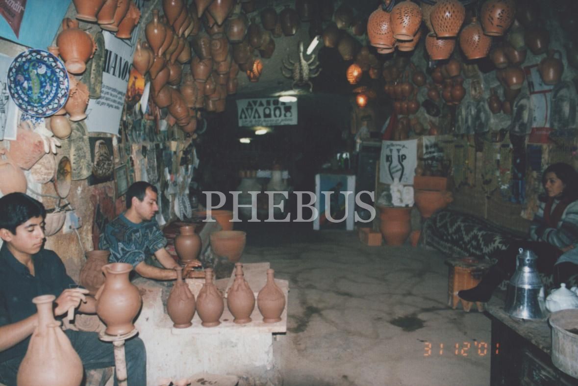 Tarihi bir çarşı içinde el yapımı çömlek mağazası, 15x10 cm