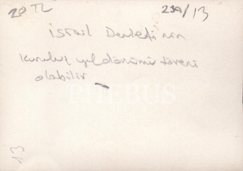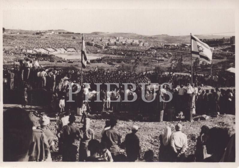 İsrail Devleti´nde bir bayram kutlaması esnasında askerî geçidi izleyen halk, 7x10 cm